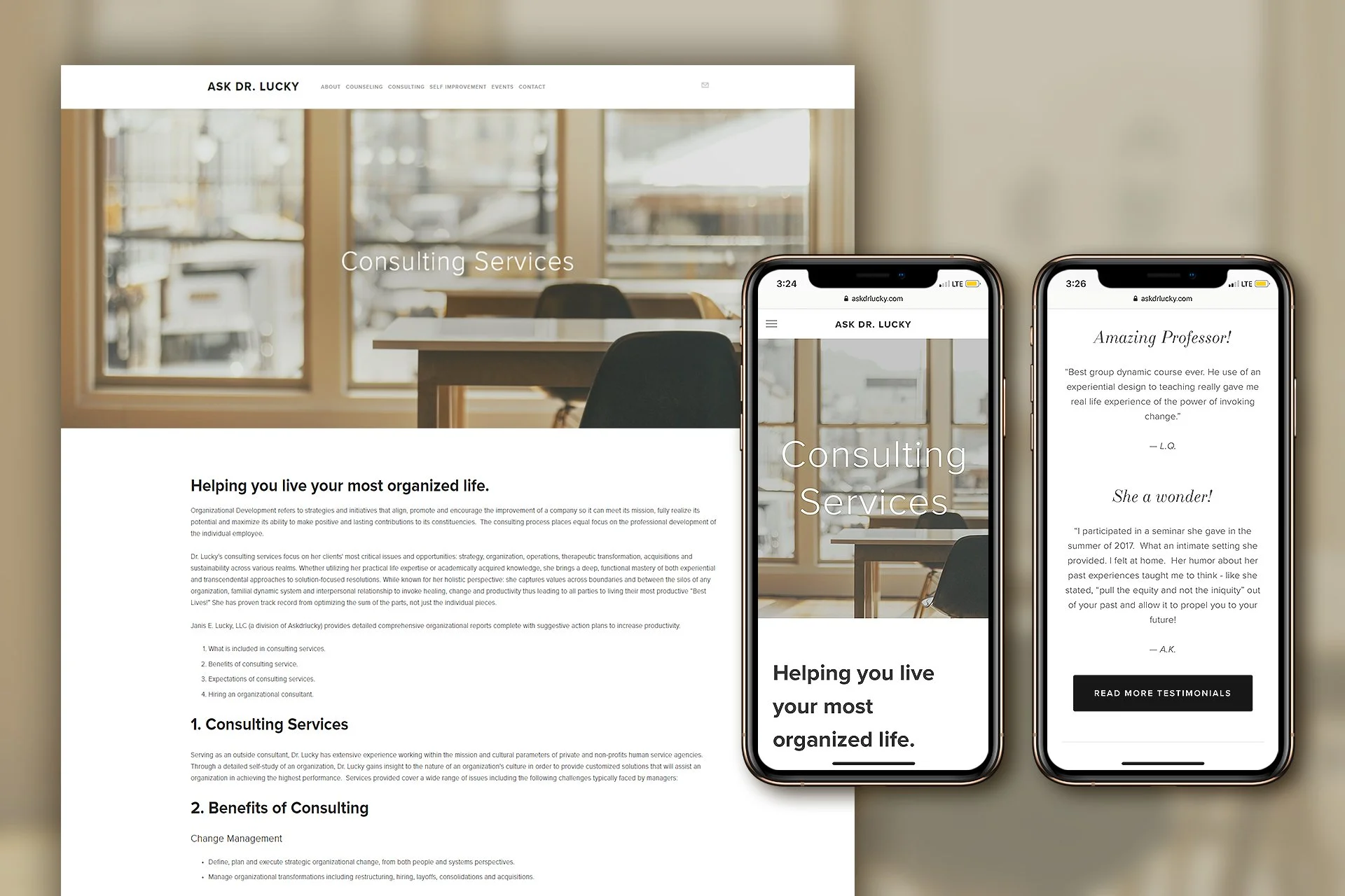 Dr. Janis Lucky was looking to create a website for her business that allowed people to schedule appointments, connect with her online, sign up for events, read her blog, and listen to her podcast.