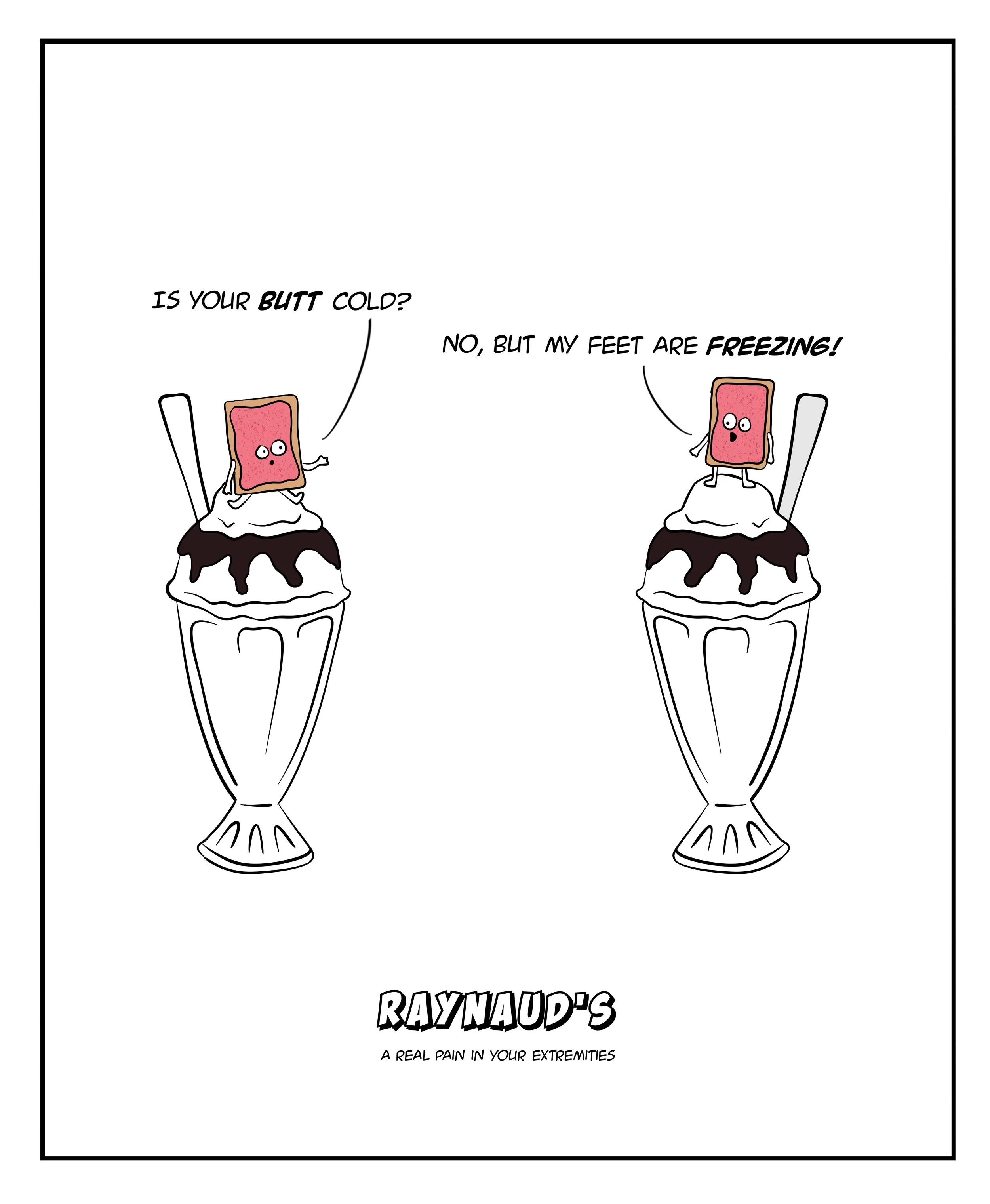 From the NIH: Raynaud’s syndrome/disease/phenomenon “is a condition that causes the blood vessels in the extremities to narrow, restricting blood flow. The episodes or ‘attacks’ usually affect the fingers and toes. In rare cases, attacks occur in other areas such as the ears or nose. An attack usually happens from exposure to cold or emotional stress.” When a medical journal says something is a “rare case,” you can bet I’m in that small percentage because I’m ✨special✨