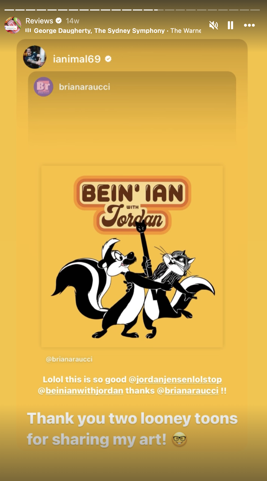My work has been reviewed by major companies such as Poppi Soda; comedians like Jordan Jensen, Ian Fidance, Mike Cannon, Josh Blue, and Tina Friml; podcasts such as Bein Ian with Jordan, Chrissy Choas, as well as several other clients and fans! Watch Ian Fidance and Jordan Jensen unboxing my stickers made for their podcast below!