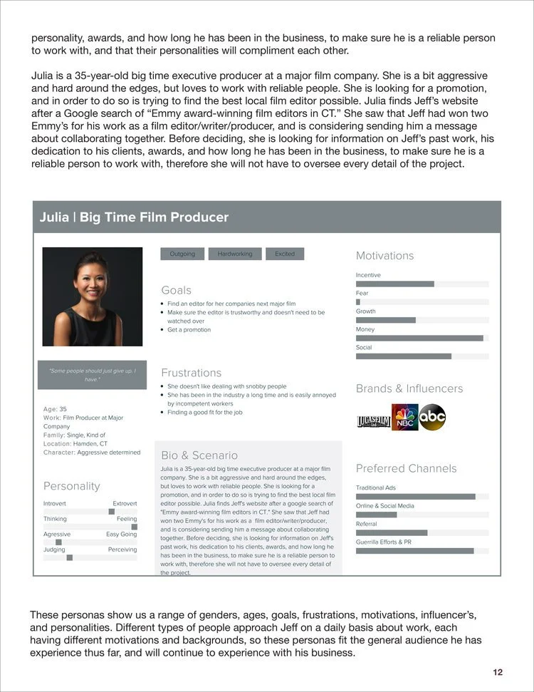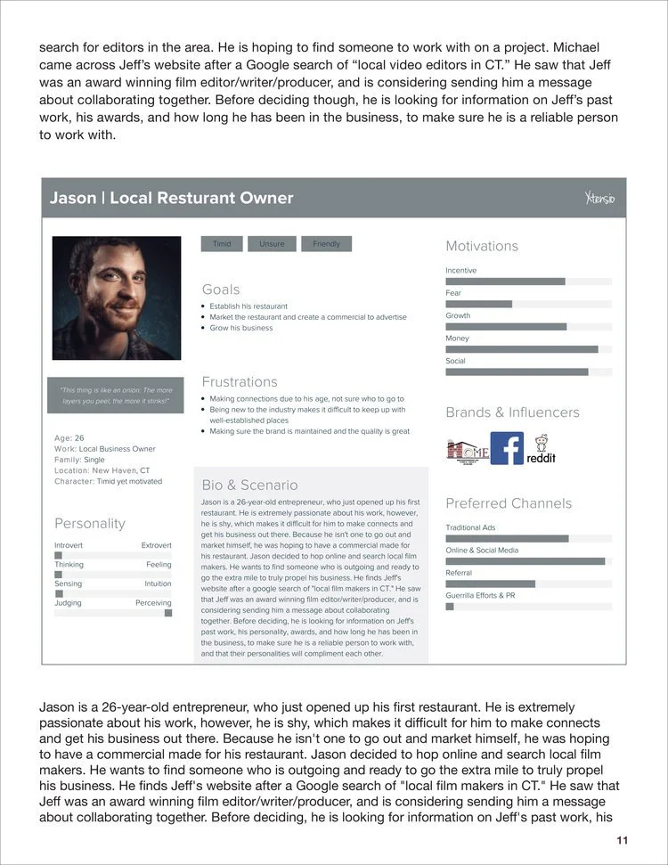 I created a services tab in the navigation, simplified the information architecture by nesting categories, added social media information, as well as contact information, to allow people to get a better understanding of who Jeff is, and what he has to offer. The redesign also completely refreshed the UI with a more modern look that showcased the video samples with more prominence.