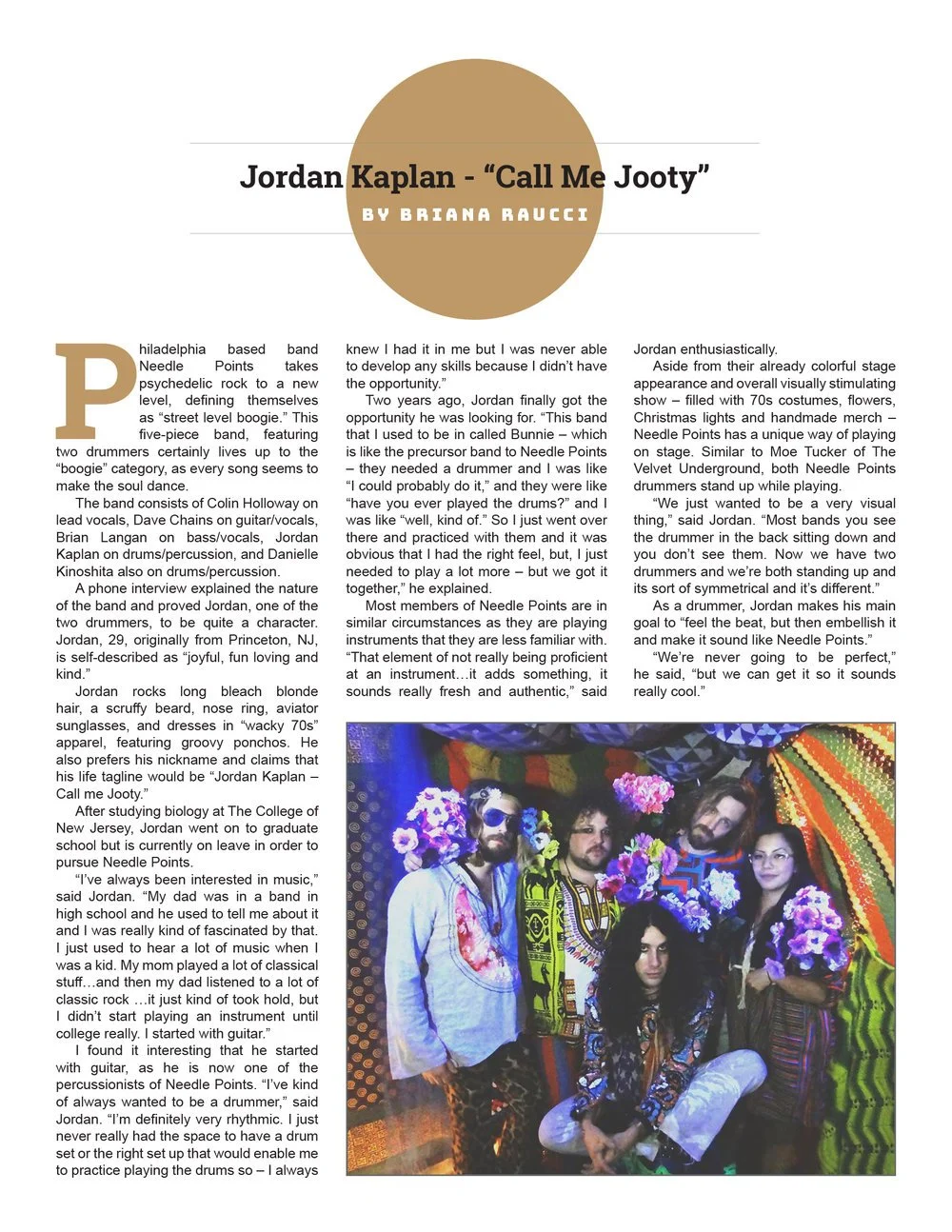 As a drummer, Jordan makes his main goal to “feel the beat, but then embellish it and make it sound like Needle Points.”