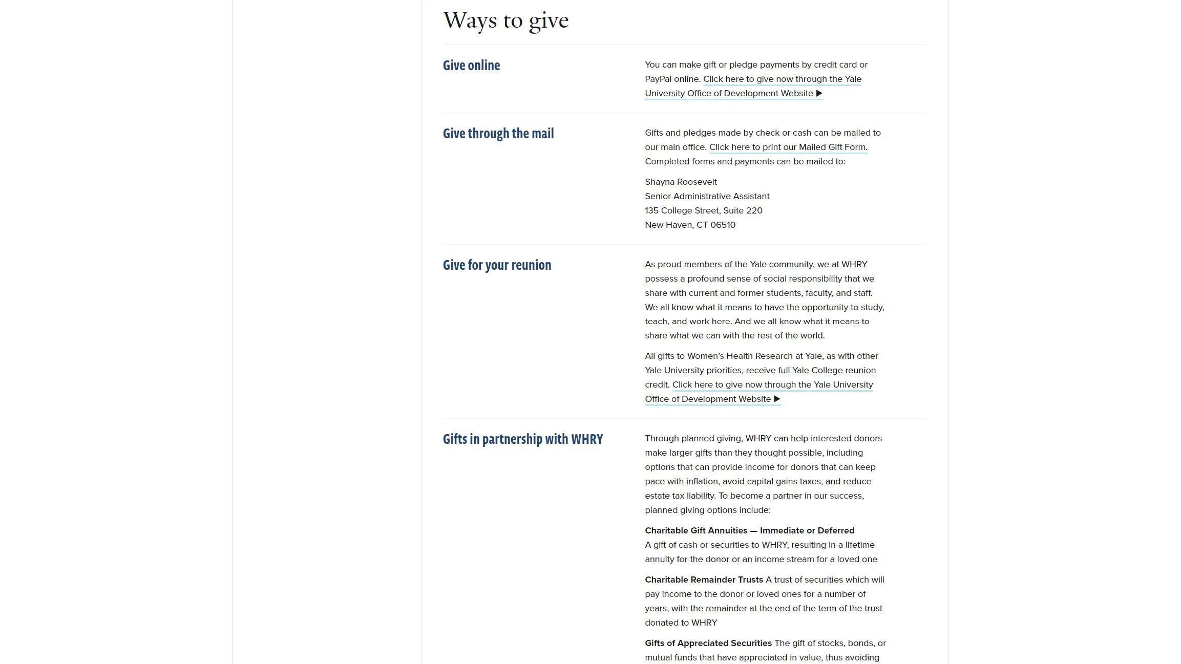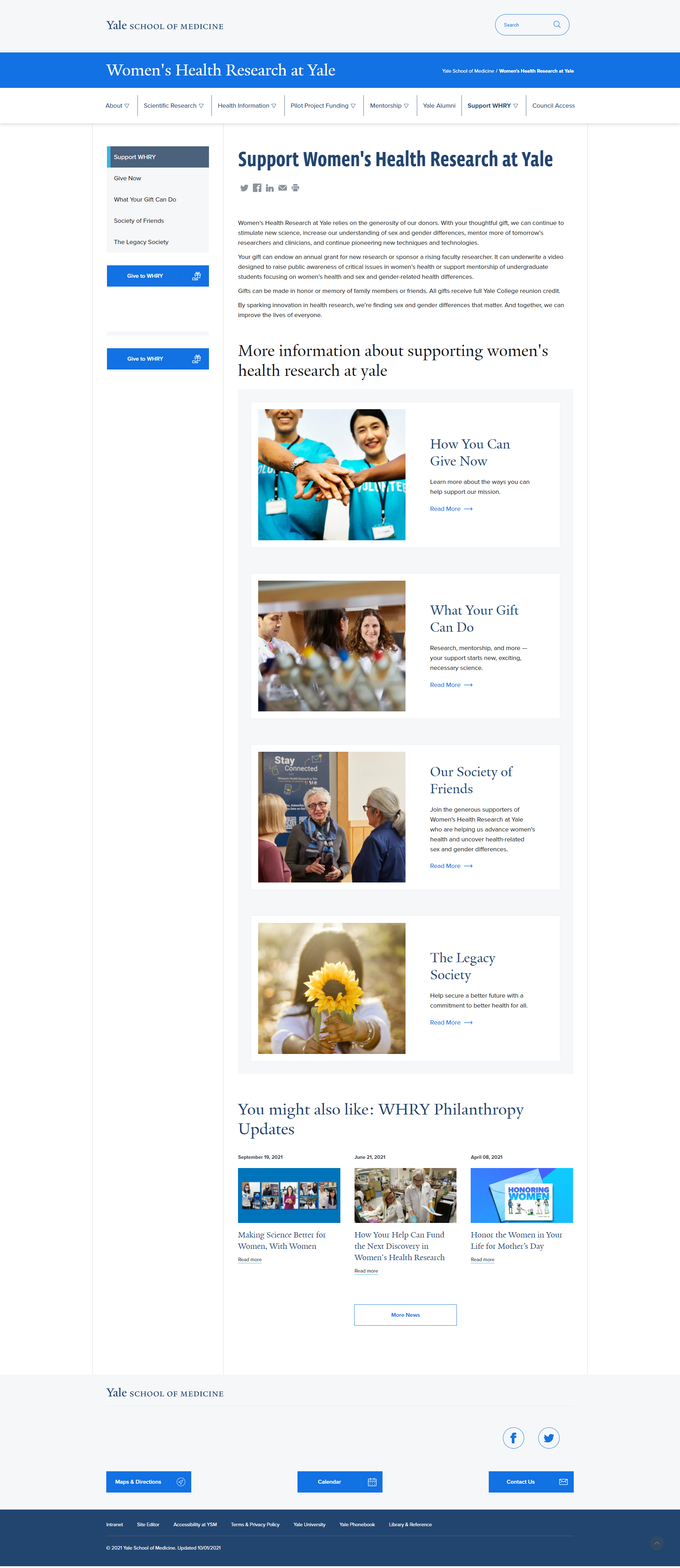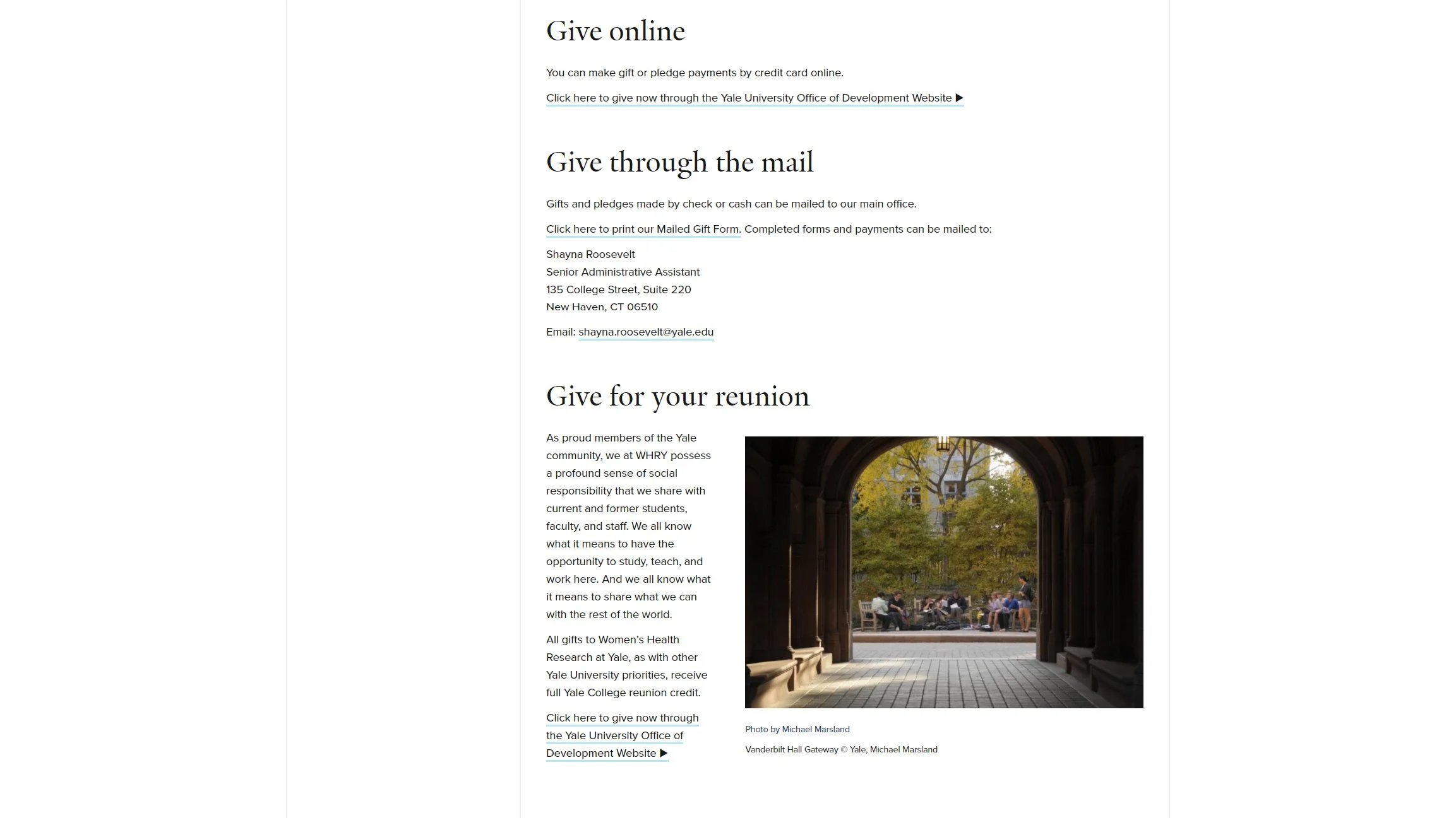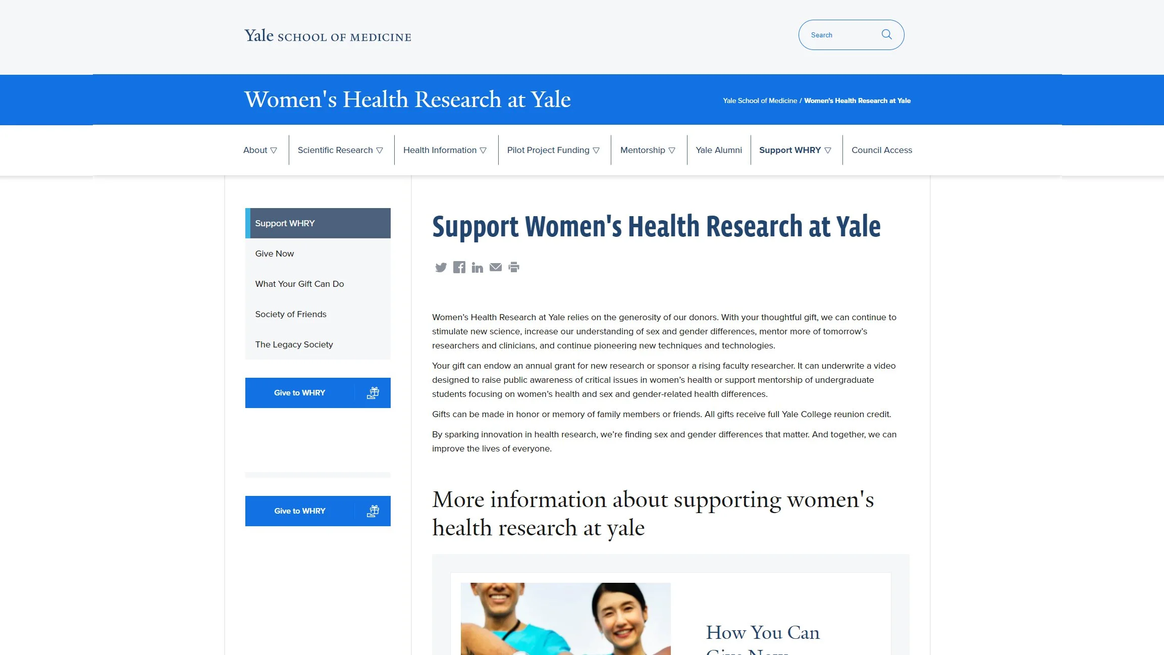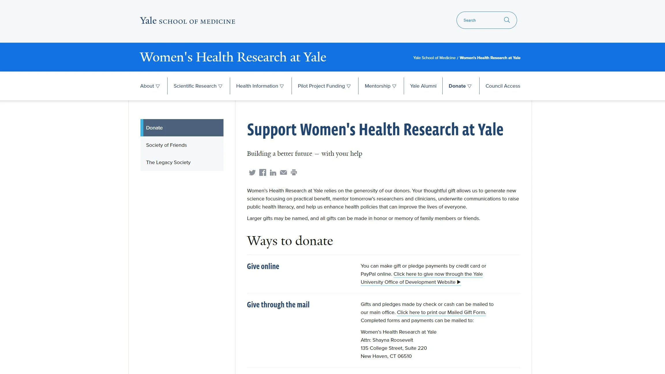 Women’s Health Research at Yale had multiple pages explaining how users could donate