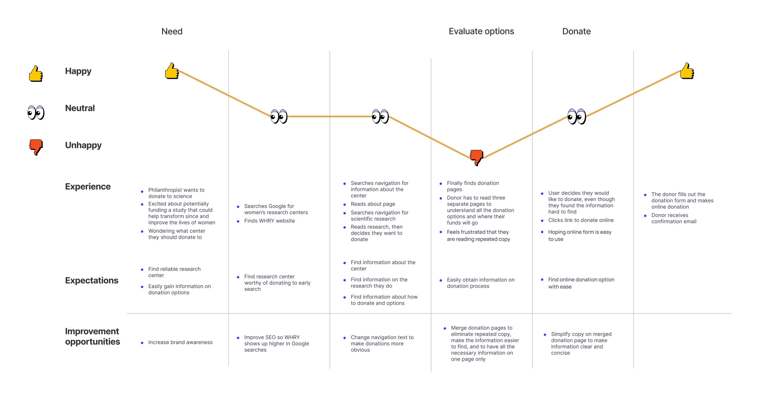 This suggested that the users were having a tough time understanding how they could donate quickly, where their money would be used, and how donating could benefit them. When I noticed this issue, I presented it to my manager, colleagues, and WHRY‘s Council, which consists of 20 major donor