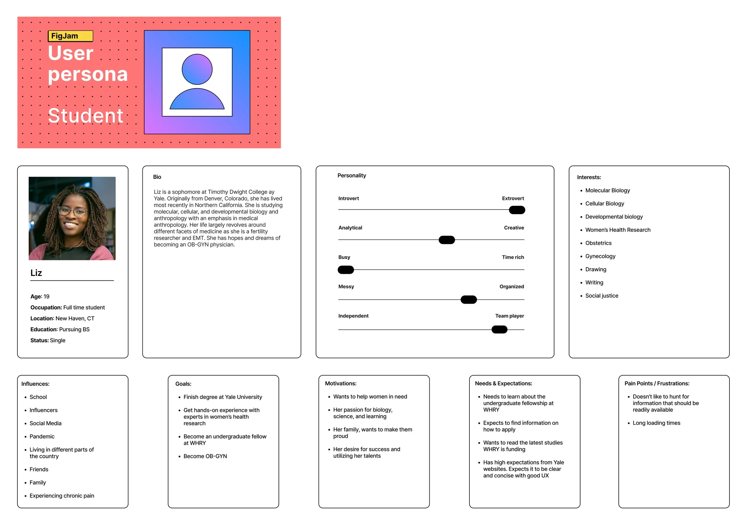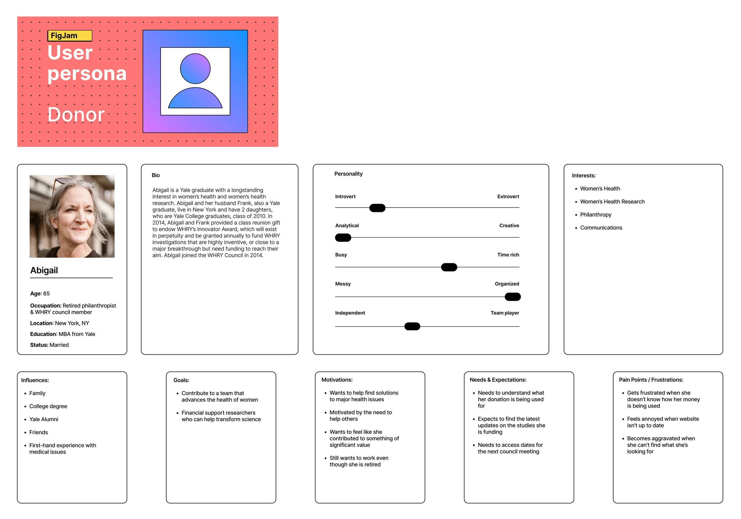 Based on the information I gathered and knowing our key audiences, I created personas to identify the unique needs of our users.
